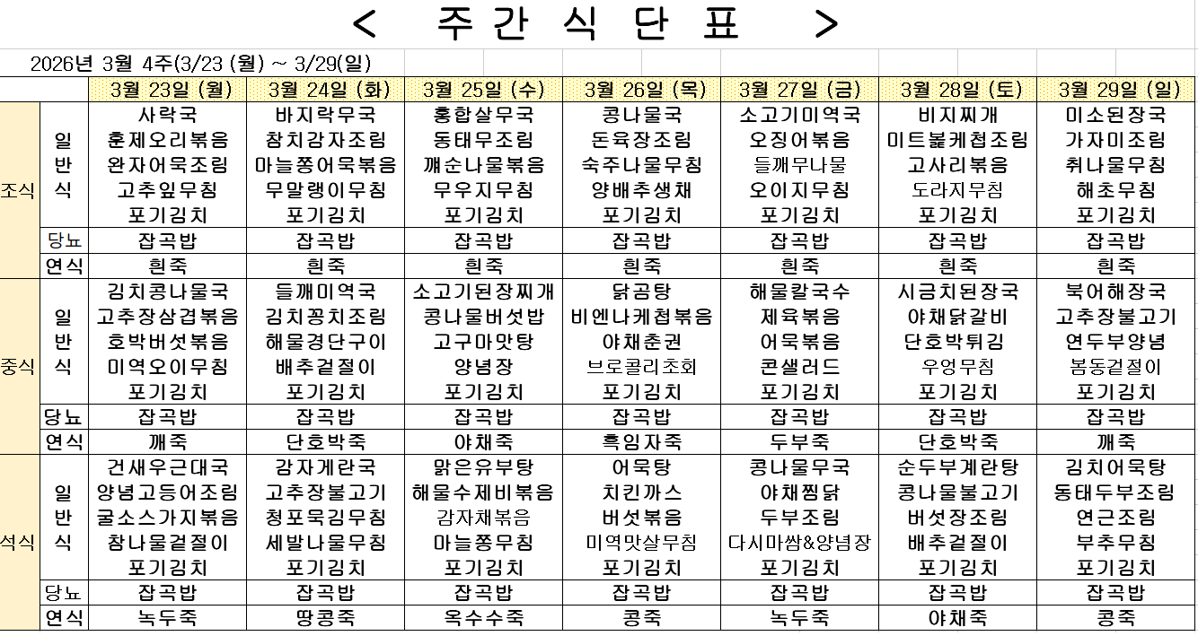 2026년 3월 4주차 식단표