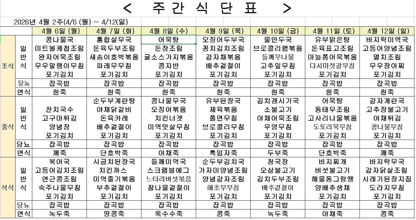 2026년 4월 2주차 식단표